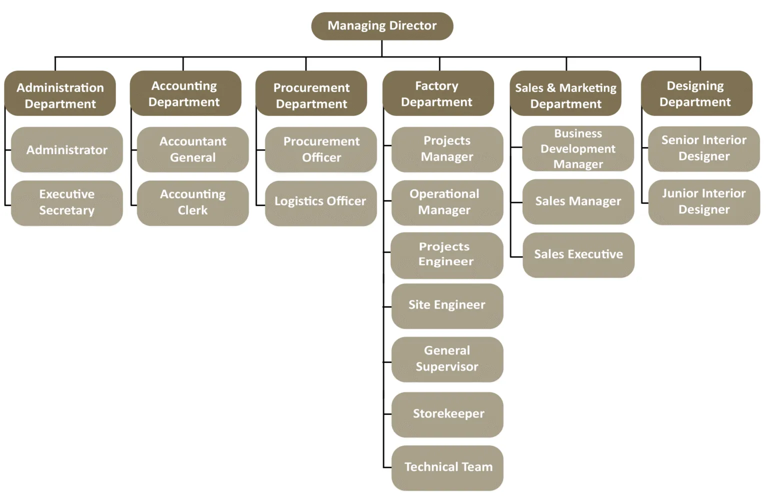 نُصمم هيكلنا التنظيمي بما يُعزز المرونة، التخصص، وسهولة التوسع إقليميًا. نُشجع على التعاون بين الأقسام لضمان تقديم حلول داخلية مبتكرة بكفاءة وجودة عالية.