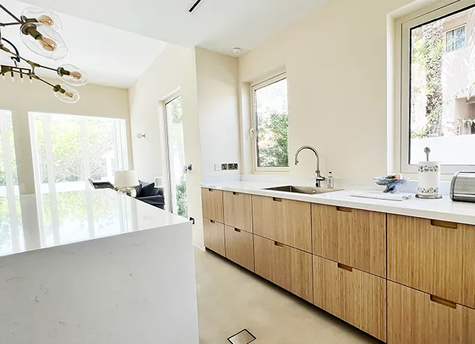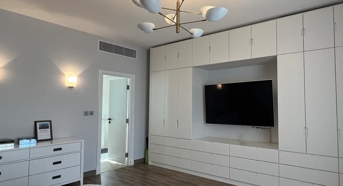 Art Line commissioned Heritage Palace Décor for a complete home interior upgrade with a focus on warmth, elegance, and functional design. The scope included kitchen cabinetry, bedroom joinery, decorative wall panels, and customized living room TV units. Emphasis was placed on lighting layers, integrated storage, and premium materials like walnut veneer and soft-finish melamine. Heritage Palace Décor redefined the space layout to accommodate open-plan living while retaining privacy in sleeping quarters. We introduced built-in seating, window surrounds, and walk-in wardrobes across the residence. Subtle color palettes and smooth transitions between zones enhanced the home’s aesthetic and spatial flow. All service areas were fitted with HPL and water-resistant joinery.